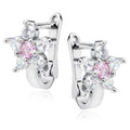 Zilveren oorbellen van sterling zilver (925) met witte en roze zirkonia's voor meisjes. Deze zilveren oorbellen hebben een rhodium coating die ervoor zorgt dat je er eindeloos plezier van hebt. Door de fijne sluiting kun je met deze oorbellen slapen zonder irritaties.