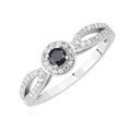 Centraal staat een betoverende zwarte saffier (zirkonia), omringd door een halo van sprankelende kristallen (witte zirkonia's) die de diepte van de centrale steen accentueren. De gesplitste schacht, ingelegd met een kristallen pavé, weerspiegelt een gevoel van eeuwigheid en stroomt sierlijk om uw vinger.