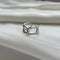Silberner Statement-Ring im abstrakten Stil. Der Ring besteht aus Sterlingsilber und ist rhodiniert. Dadurch erhält der Ring einen "weißgoldenen" Glanz und verfärbt sich nicht wie typisches Silber.