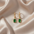 Deze goud vergulde oorbellen zijn vervaardigd van 925 sterling zilver en afgewerkt met een rechthoekige groene zirconia hanger. Het ontwerp combineert een slanke oorring met een langwerpig hangend element, wat zorgt voor een rustige en verfijnde uitstraling.