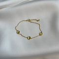 Gold bracelet with cat's eye gemstone. The bracelet is made of sterling silver (925) and is 18K gold plated. The length of this bracelet is 19 cm. Thanks to the extra eye you can also wear it at 16 cm.