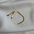 The beautiful Shimmer Gold bracelet is made of sterling silver and is plated with 18k gold. Thanks to the adjustable length of 16 to 21 cm, the bracelet is suitable for almost any wrist size. The bracelet is provided with shiny gold, which provides an elegant and stylish look. The bracelet is perfect to wear as a statement piece or to combine with other jewelry for a personal and stylish look. The bracelet is also durable and easy to maintain.